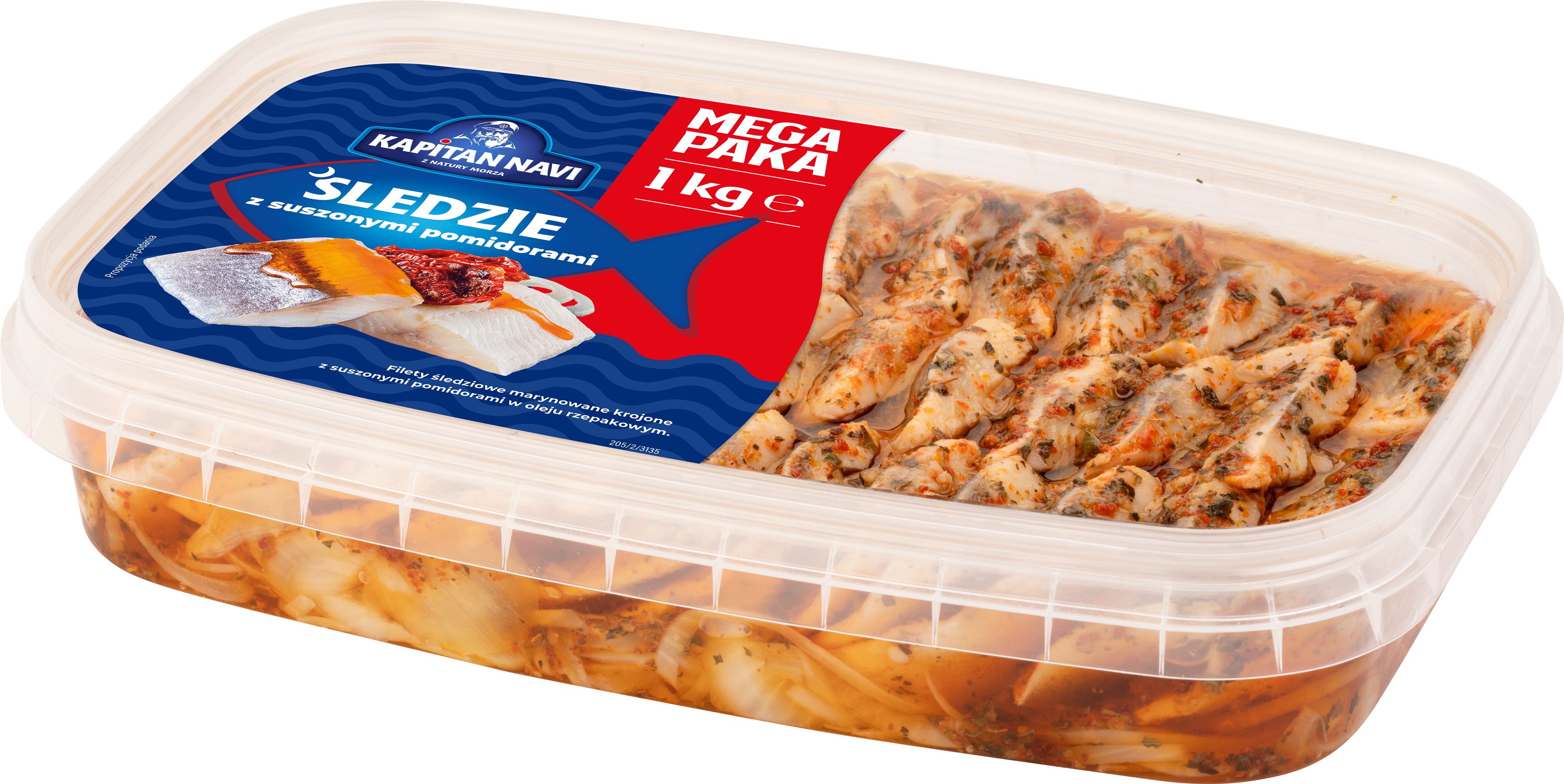 Main ingredients: Pickled herring fillets, rapeseed oil, onion, dried tomatoes, spices.